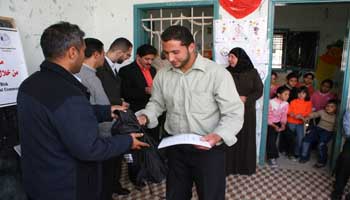المركز الفلسطيني للديمقراطية وحل النزاعات يوزع حقائب للطوارئ
