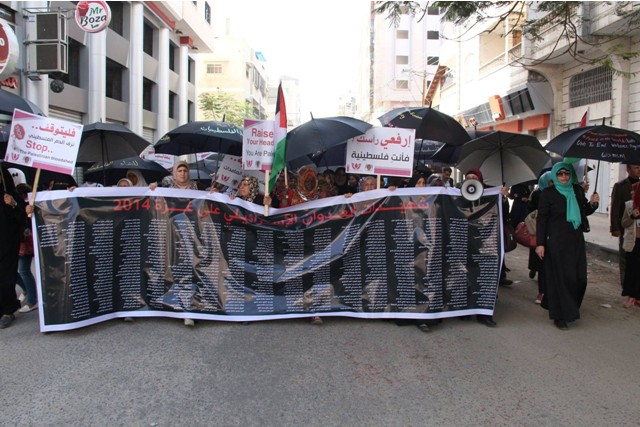 يذكر أن النساء رفعن شعارات يطالباً بمحاكمة ومسائلة الاحتلال على انتهاكاته وجرائمه.