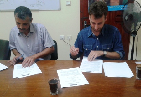 وقع نائب مدير المركز الفلسطيني للديمقراطية وحل النزاعات فرع غزة، أ. إياد أبو حجير ، اتفاقية تنفيذ مشروع السياسة القانونية لحماية الأحداث، مع مدير جمعية أرض الإنسان السويسرية جيرمي برون، بحضور د. ختام أبو حمد مدير مكتب أرض الإنسان بغزة، والمحامي أحمد المصري منسق المشروع بمركز حل النزاعات.