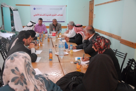عقد تحالف القوى المدنية للسلم الأهلي بالمركز الفلسطيني للديمقراطية وحل النزاعات لقاءً ترحيبي مع الأعضاء المنتسبين للتحالف في مقر فرع المركز بمحافظة خان يونس بمشاركة العديد من رجال الإصلاح والمحامين والإعلاميين وممثلين عن التجمعات الشبابية والنسوية من محافظات جنوب قطاع غزة.