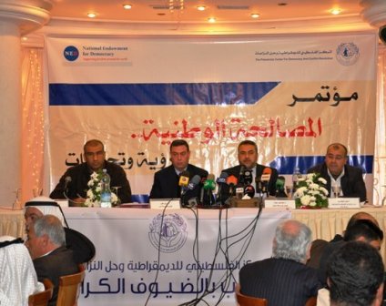 جاءت هذه التصريحات خلال المؤتمر الذي عقده المركز الفلسطيني للديمقراطية وحل النزاعات بعنوان ” المصالحة الوطنية..رؤية وتحديات ” بمشاركة ممثلين عن حركتي فتح وحماس والفصائل الفلسطينية في فندق جراند بالاس بمدينة غزة وبحضور ممثلين عن الحكومة وعدد من المؤسسات الحقوقية والوطنية ورجال الإصلاح والمخاتير.
