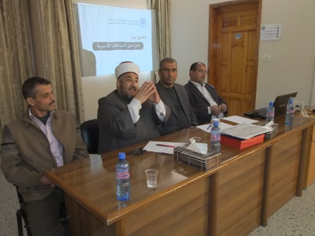 احتفل المركز الفلسطيني للديمقراطية وحل النزاعات وبالتنسيق مع المجلس الأعلى للقضاء الشرعي بتخريج دورة تدريبية لتنمية قدرات العاملين في دائرة الإرشاد الأسري في المحاكم الشرعية بتاريخ 30-11-2011 بالمقر الرئيسي للمركز بمدينة غزة.