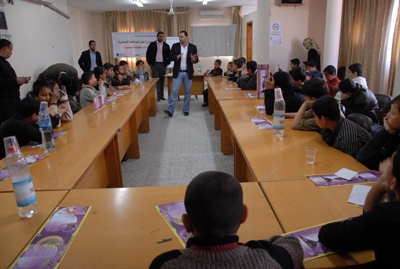 زار وفد من البرلمان الطلابي لمدرسة ذكور البريج الاعدادية “أ” مقر المركز يوم الاثنين 11/4. حيث كان في استقبال الوفد كل من السيد أحمد المصري والسيد فادي حمد محاميا المركز. ومن جانبه، تحدث السيد المصري عن رؤية وأهداف المركز في كلمة موجزة ثم وضح بعض المفاهيم الواجب معرفتها حول حقوق الطفل ودور المركز في حماية الأطفال ضحايا النزاعات ومساعدتهم نفسياً واجتماعياً وقانونياً. كما وأكد السيد ياسر أبو شرار، مشرف البرلمان الطلابي بأن الهدف من زيارة المركز هو توعية الطلاب بحقوقهم وصقل معارفهم ومهاراتهم، إضافة إلى تعريفهم ببعض المراكز التي ترعى الأطفال وتقدم التوعية القانونية لهم. وفي نفس السياق، ناقش السيد فادي حمد مع الطلاب بعض الانتهاكات في حقوق الطفل التي يتعرض لها في البيت والمدرسة والشارع، كما ورحب السيد حمد بفكرة عمل البرلمان وأبدى إعجابه حول اهتمام البرلمان بمعرفة الحقوق القانونية للأطفال والمشرعة في القوانين والعهود الدولية والمحلية.