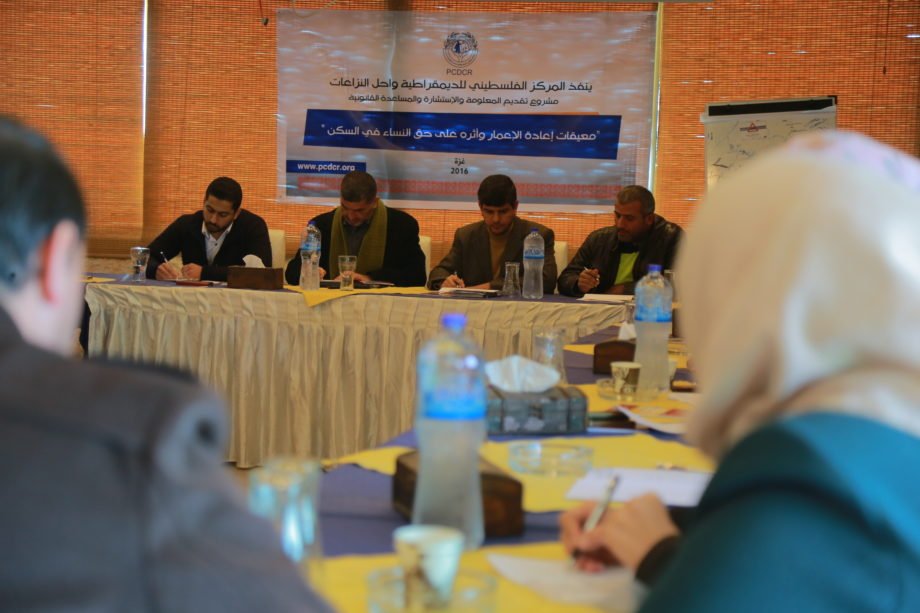 عقد المركز الفلسطيني للديمقراطية وحل النزاعات لقاء حواري بعنوان “معيقات إعادة الاعمار وأثره على حق النساء في السكن” ضمن أنشطة مشروع تقديم المعلومات والمساعدة والاستشارة القانونية في قطاع غزة الذي ينفذه المركز بالشراكة مع المجلس النرويجي للاجئين. وقد حضر اللقاء كل من المهندس/ بلال اليازجي القائم بأعمال منسق المساعدات الطارئة- وكالة الغوث، والأستاذ/ محمد عبود مدير دائرة أشغال الشمال (وزارة الأشغال العامة والإسكان)، والأستاذ/ حسن الوالي منسق عام رابطة النازحين، والمهندس/ محمود الكيال- بلدية غزة، والمهندس/ مهند القانوع مدير الدائرة الهندسية- بلدية بيت حانون، والأستاذ/ عبد المنعم الطهراوي منسق المشروع، بالإضافة إلى عدد من المحامين والناشطين المجتمعيين والحالات المتضررة، وذلك في مطعم السلام أبو حصيرة بغزة.