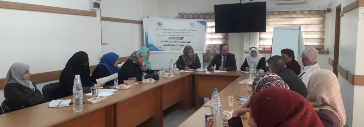عقد المركز الفلسطيني للديمقراطية وحل النزعات بالشراكة مع مكتب المساعدات الشعبية النرويجية لقاء حواري حول زيادة نسبة المشاركة السياسية للنساء في هيئات الحكم المحلي ضمن حملة (انا وانت شركاء)