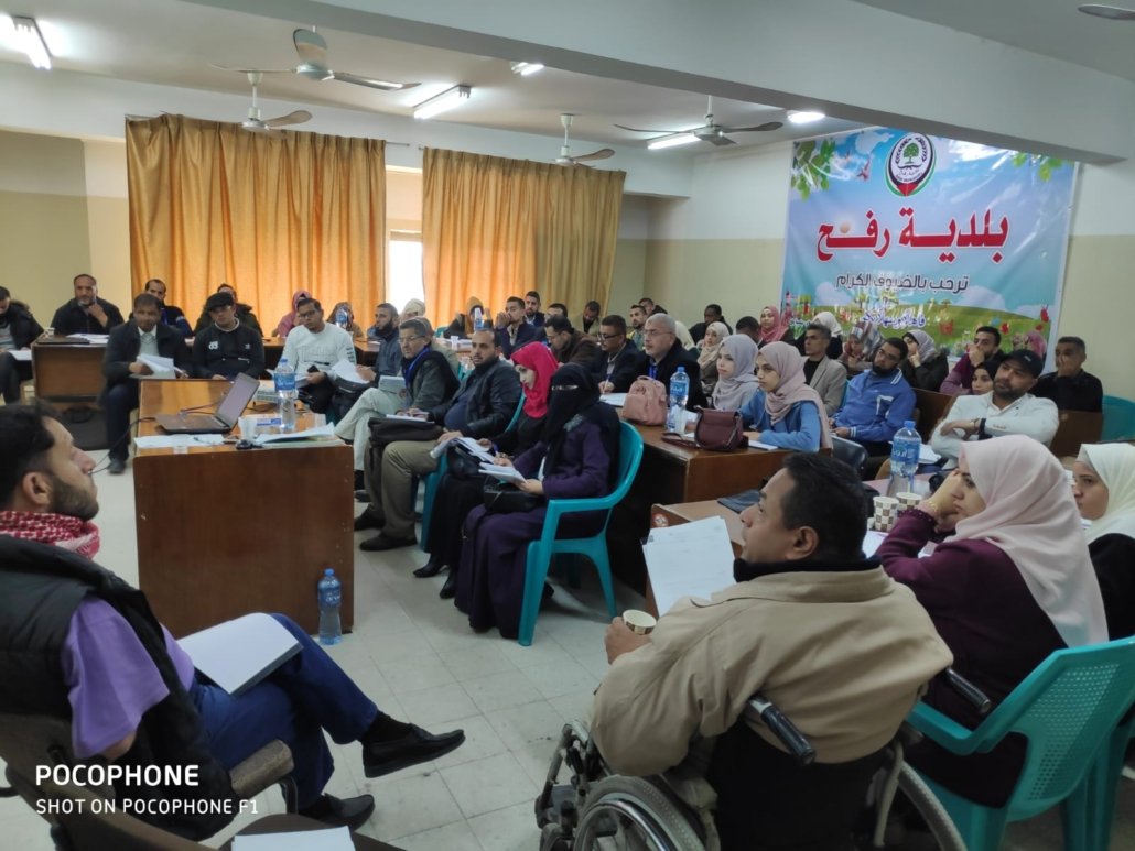 تم تنفيذ تدريب وبناء قدرات الفرق الفائزة من خلال استهداف 106 ممثلين/ات عن المبادرات الفائزة في المرحلة الأولى في كل بلدية وذلك يوم الخميس 27/2/ 2020، في قاعة بلدية رفح، حيث تناول التدريب كل من مهارات إعداد وكتابة مقترحات المبادرات المجتمعية، معايير التقييم النهائية للمبادرات بعد تعبأة النموذج النهائي، الجدول الزمني للتقييم واعلان النتائج.